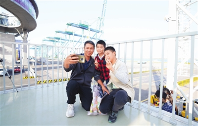 市民参观游览天津港工业游景点并合影留念。 本报记者 吴迪 通讯员 周思涵 摄