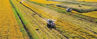连日来,津南区小站镇近1.4万亩小站稻进入集中收割期。小站稻会馆种植核心区,会馆村村民正在收割620亩金稻“919”小站稻,预计总产量在70万斤左右。收割机轰鸣运作,到处都是喜人的丰收景象。