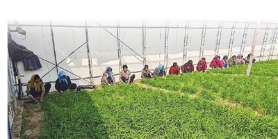 村民忙着采收韭菜。