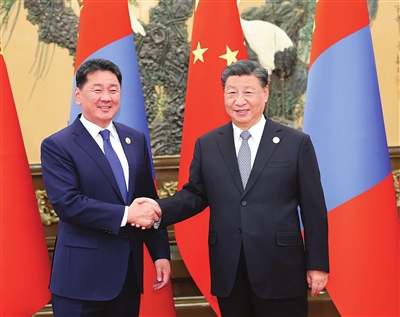 习近平指出,蒙古国是共建“一带一路”的天然伙伴,也是最早支持“一带一路”倡议的国家之一。10年来,双方深入对接发展战略,在贸易投资、互联互通、民生工程等方面合作取得可喜成果。共建“一带一路”倡议同蒙古国“草原之路”发展战略有着广阔合作空间。希望蒙方依托自身联通欧亚的地理条件,为高质量共建“一带一路”发挥更大作用。