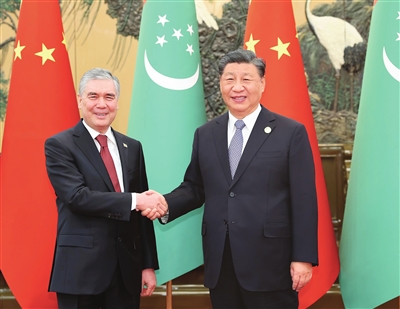 新华社北京10月19日电(记者 温馨 侠克)10月19日上午,国家主席习近平在人民大会堂会见来华出席第三届“一带一路”国际合作高峰论坛的土库曼斯坦民族领袖、人民委员会主席别尔德穆哈梅多夫。