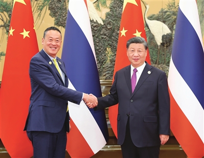 习近平强调,中方支持泰国走符合自身国情的发展道路,双方要继续在涉及彼此核心利益和重大关切问题上相互给予坚定支持。中泰要做高质量共建“一带一路”的排头兵,加快中泰铁路建设,拓展数字经济、绿色发展、新能源等领域合作,扩大人文交流。双方要加大打击电信诈骗、网络赌博等跨境犯罪,为两国发展营造安全环境。中方愿同泰方加强在东盟、澜湄合作、联合国等多边框架内合作,分享中国大市场和高水平对外开放机遇,为亚洲发展注入正能量,为推进全球治理变革作出积极贡献。