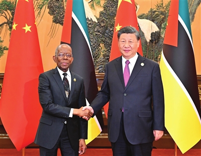 习近平指出,中莫是风雨同舟、患难与共的真朋友、真兄弟。我高兴地看到,中莫共建“一带一路”合作取得丰硕成果。中方愿同莫桑比克等非洲国家高质量共建“一带一路”,促进“支持非洲工业化倡议”、“中国助力非洲农业现代化计划”、“中非人才培养合作计划”三项合作举措落地实施,加强政策对接和合作规划,分享发展机遇、共享发展成果,助力非洲国家加快现代化进程。