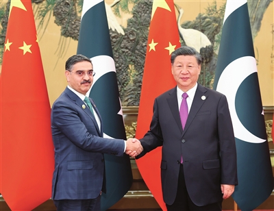 习近平指出,中国和巴基斯坦是全天候战略合作伙伴和铁杆朋友,巴历届政府都积极支持和参与“一带一路”合作。10年来,中巴经济走廊取得丰硕成果,有力推动巴基斯坦经济社会发展,成为共建“一带一路”的重要标志性工程。中方愿同巴方弘扬传统友谊,深化互利合作,加快构建新时代更加紧密的中巴命运共同体。