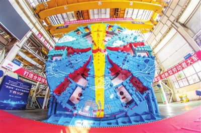 据了解,“津城1号”盾构机总长约120米,总重量约3200吨,是目前天津独头掘进距离最长、开挖直径最大的泥水平衡盾构机。刀盘涂装设计灵感来源于《西游记》中的“如意金箍棒”,“金箍”谐音“津沽”。