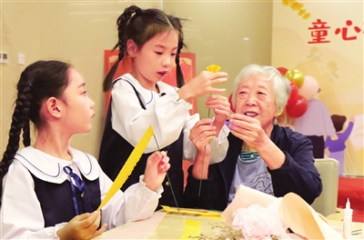 重阳节到来之际,天津市少年儿童活动中心联合河西团区委走进养老院,举办老少同乐会。 本报记者 王倩 摄