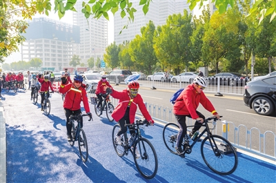 同时,路线所经道路均增设隔离护栏,重新布设交通标线,配备标志牌、警示牌、骑行专用垃圾桶、骑行路口助停设施等。