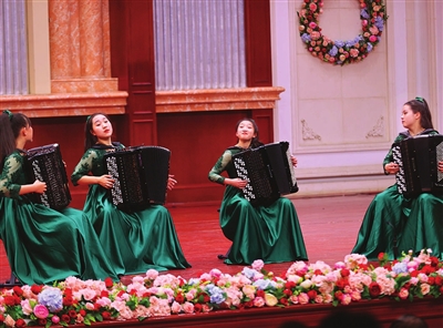 音乐会上演奏了《嬉游曲》《谐谑曲》《小舢板》《火车向着韶山跑》《炎黄风情》等中外名曲,观众在美妙音符中感受手风琴演奏的浪漫深情。