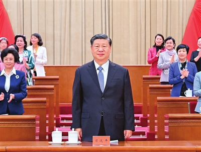 10月23日,中国妇女第十三次全国代表大会在北京人民大会堂开幕。这是中共中央总书记、国家主席、中央军委主席习近平在主席台向与会代表致意。 新华社记者 谢环驰 摄