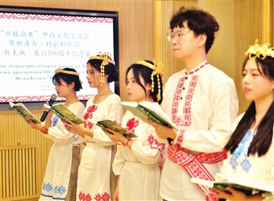 图为学校白俄罗斯语专业学生现场朗诵《新土地》(节选)。