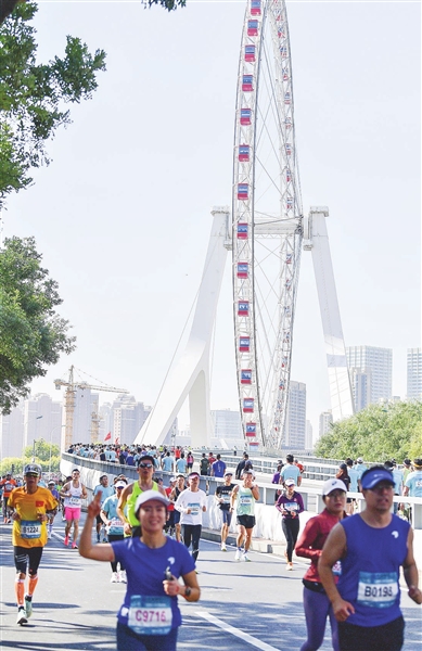 10月15日,来自世界各地的3万名参赛者集聚津城、逐梦天马。“我曾在2020年来过天津。”说话的是获得今年全程马拉松男子组第三名的徐文昊。跑完后,他感叹道:“天津太漂亮了,一定要去逛一逛。”