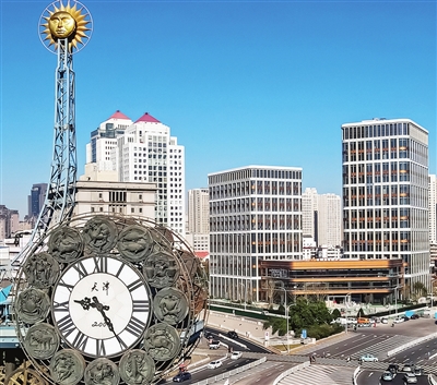 位于河北区的华为天津区域总部项目(图右)整体展露新颜。目前,机电安装和精装施工进入尾声,园林施工也在有序进行。 本报记者 吴迪 摄