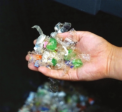 位于浙江湖州安吉的威立雅华菲高分子科技(浙江)有限公司拍摄的用于熔融造粒的塑料废弃物原料。