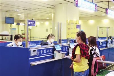 图为天津机场边检站完成复航首航航班边防检查任务。