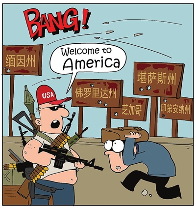 美国枪击惨案频频发生,无辜生命接连消殒,枪支管控却始终难见实效。枪支暴力已成为美国社会的顽疾,也是美国社会“反复出现的噩梦”。(据新华社) 王宇 画