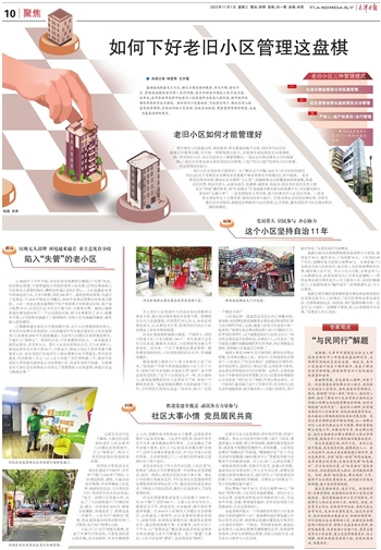 老旧小区究竟如何才能管好?为了解决这个问题,2021年,河北区政协曾经发出过《关于发挥社区治理体系优势提升物业管理水平的建议》,其中提到,一是发挥党的领导优势,锻造社区治理的“主心骨”,加强联席会议的覆盖面和渗透度,推进社区民警、物业负责人、业委会成员、住建委、城管委、民政局、驻区单位党员负责人到社区“两委”兼任职务,将“红色物业”打造成联系服务群众的重要平台,切实解决群众身边的“关键小事”。二是发挥政府主导优势,着力改善老旧小区居住环境。三是发挥业委会和业主主体优势,提高居民参与意识。四是发挥社会协同治理优势,完善共建共治共享格局,鼓励党员积极参与社区管理,以点带面,激发居民参与社区建设和治理的积极性。