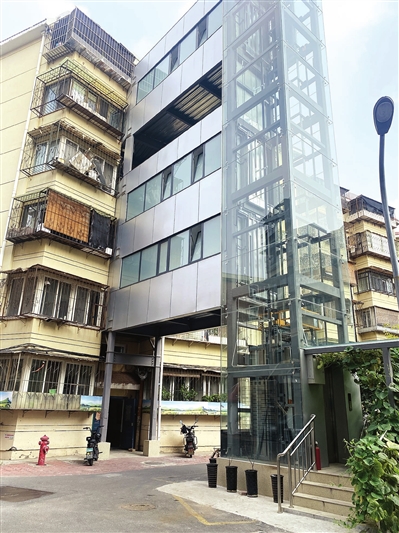 记者近日在小区里看到,停车秩序井然,环境干净整洁。物业公司出资对部分楼门进行了改造,楼道里铺上木地板,摆上休闲桌椅,墙壁设置党建宣传屏,或安装书架摆放党建图书,非常温馨。小区里处处都有“智慧社区”的痕迹,“健康微诊室”“红十字会自动体外除颤器(AED)服务中心”等都是智能为老服务平台的配套设施。在小区30门,记者还发现了一部新加装的电梯,电梯为外挂式,直通6层顶楼。金庭里社区居委会的工作人员告诉记者,高楼层居民提出加装电梯诉求后,他们多次上门给低楼层居民做工作,消除他们的顾虑。在物业公司的配合下,终于把电梯安装开通了。