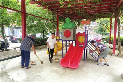 小区花坛的一盆盆花是居民从自己家搬来的,装饰物、标语牌这些设施都是业委会成员和居民们亲力亲为制作并挂上去的,就连小区的卫生也是大家一起清理,“每周五是业委会固定给小区大扫除的日子,好多居民来帮忙,这天就像是我们小区的卫生日。”65岁的业委会成员张国权说,业委会7人,3名党员,“党员就是关键时刻要起模范带头作用的,所以奉献是应该的,更别提小区就是自己的家。”