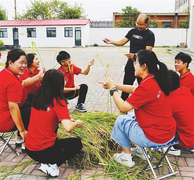 又到一年秋收季,近日,天津职业大学“农墨种彩”宣讲实践团学生来到宁河区现代农业产业园区,实地摘稻、捡穗儿,体验稻香文化。