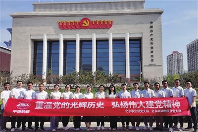 为进一步推进主题教育走深走实,中铁十二局集团国际公司北京党支部组织全体党员参观以“不忘初心、牢记使命”为主题的中国共产党历史展览馆,深刻感悟波澜壮阔的百年党史和蕴含的伟大建党精神,并将其转化为坚定理想、锤炼党性和指导实践的强大力量。 (通讯员 武月仙)