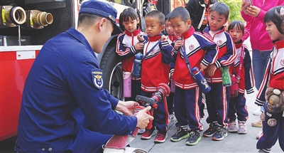 近日,和平五幼中班幼儿及部分家长代表走进和平区消防救援支队所属的五大道消防救援站,开展“家园走进消防站 携手致敬火焰蓝”主题活动,旨在提升幼儿、教师及家长的消防安全意识和自我保护能力,持续发挥幼儿园、家庭及社会协同育人合力。 记者 刘欣 通讯员 孙雨辰 摄