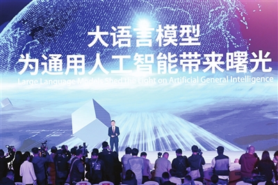 日前,世界互联网大会领先科技奖颁奖典礼在乌镇举行。图为知识增强大语言模型关键技术发布现场。