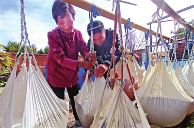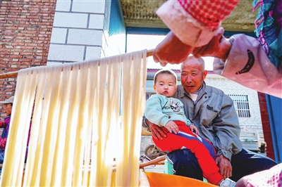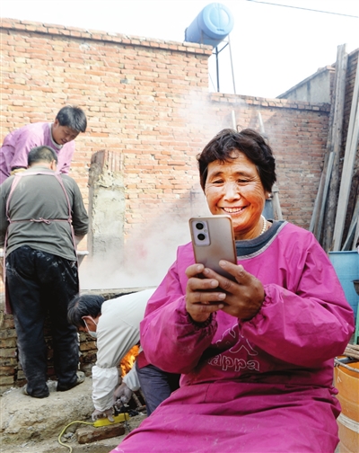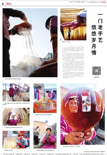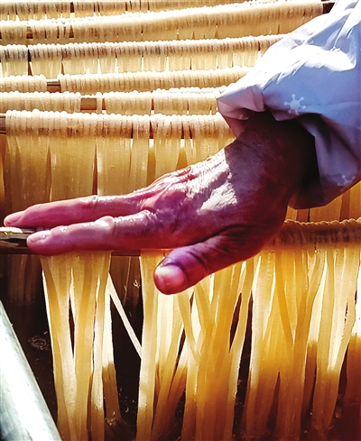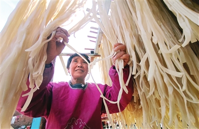 劳动人民的智慧造就了传承百年的美食技艺,伴随着升腾的热气,“漏”好的粉条,已陆续被整齐地晾在了空地上、院子中,人们不停地忙碌着……刘玉民也开始用手机上网,联系起了订单,今年已有几十箱粉条被北京客户订走……