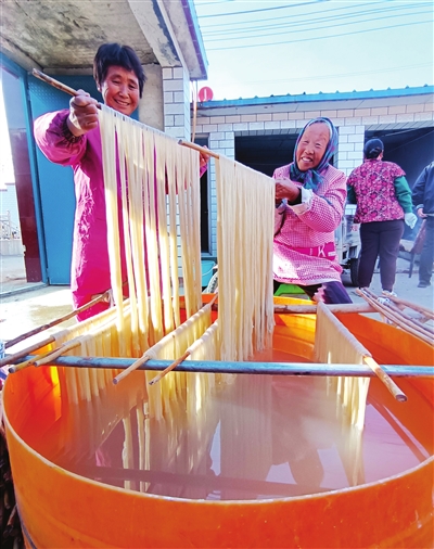 刘玉民告诉记者:“人们爱吃的粉条,用红薯做最好,不仅口感甜,还非常筋道。特别是手工‘漏’的粉条,不同于机械化加工,原料只有红薯淀粉,不加任何添加剂,能做到久煮不化。而机械加工的粉条,为了美观和不断裂,大多会在原料中加入凝胶等添加剂,煮的时间久了,就糊化了。”