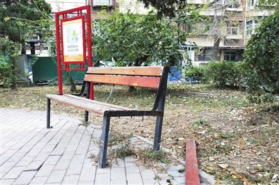 河东区天山路松风西里小区休闲园内,8个木质休闲座椅椅面木板缺失、支架松动倾斜,影响居民正常使用。