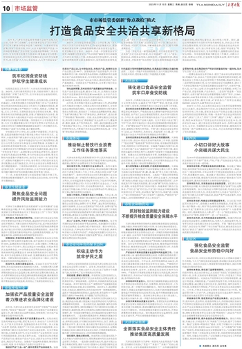 校园食品安全工作关乎广大学生的身体健康和生命安全。2023年,天津市教育两委在市委、市政府领导下,联合市场监管部门开展了系列工作,在守牢食品安全底线的同时,促进科学营养供餐。