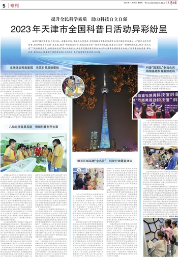 滨海新区在航天五院天津基地举办主场活动,承办在津全国科普教育基地经验交流会。此外,大沽街道闸南路社区科普游园会等一批高质量基层科普活动也深受群众欢迎;和平区主场活动为区域核心品牌“知遇和平”揭牌并举办科普文艺汇演。聚焦银龄科普、科普助力“双减”以及公众普遍关注的热点问题,各方联动组织开展形式多样的科普日活动;河北区全力推动“精彩海河北,乐享科普荟”品牌进街道、进社区、进学校、进企业,聚焦群众“衣食住行,业教保医”开展健康科普讲坛、节气饮食文化、科普研学游学等优质科普活动;河西区在承办全市主场活动的同时,还举办了“匠心智绘,品质筑梦”天津工程勘察设计大师沙龙第二场、“放心食‘塘’,你我守护”等一系列科普活动;河东区在天津站后广场组织开展主场活动,科普展览展示、互动体验、现场咨询受到群众欢迎;南开区组织开展主题为“培育食品安全科学素养,护航健康经济发展”的主场活动,推动“天开之核,科普之源”科普品牌进社区、进学校、进企业、进商圈;红桥区举办主题为“服务双减,构建全域科普品牌矩阵”的主场活动,发布“科普桃花源”的街道子品牌。
