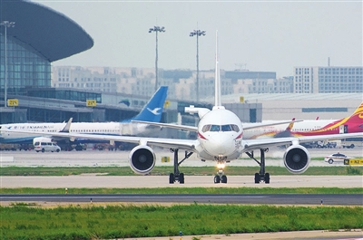 日前,在天津滨海机场一架航班正驶向跑道,准备起飞。 图片由天津滨海机场提供