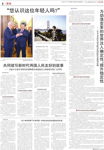 这次会晤积极、全面、富有建设性,为改善和发展中美关系指明了方向。旧金山应该成为稳定中美关系的新起点。两国元首责成双方团队在落实好巴厘岛会晤共识基础上,及时跟进和落实本次会晤达成的新愿景。两国元首同意继续保持经常性联系。