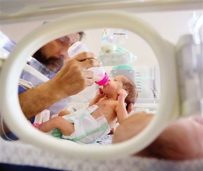 11月19日,在加沙地带南部城市拉法的一家医院,医护人员照顾从希法医院撤离的早产儿。