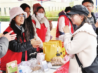 日前,天津工业大学举办“蓟州农品进校展销助帮扶”专场,将蓟州区百余种特色农副产品搬进校园,供师生选购,并通过网络销售帮助村民增收。
