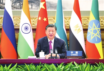 习近平强调,金砖合作机制是新兴市场国家和发展中国家加强团结合作、维护共同利益的重要平台。今天,我们就巴以问题协调立场、采取行动,为扩员后的“大金砖合作”开了个好头。中方愿同其他成员一道,开创金砖合作新时代。