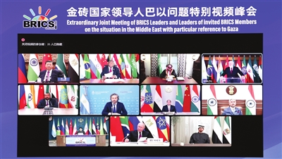新华社北京11月21日电 11月21日晚,国家主席习近平出席金砖国家领导人巴以问题特别视频峰会并发表题为《推动停火止战 实现持久和平安全》的重要讲话。(讲话全文见第2版)