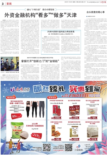 本报讯(记者 岳付玉)昨天,记者从国家金融监督管理总局天津监管局召开的专题新闻发布会上获悉,外资金融机构看好中国投资环境和长远发展前景,积极融入天津市高质量发展“十项行动”,用真金白银、实招妙招“看多”天津、“做多”天津。