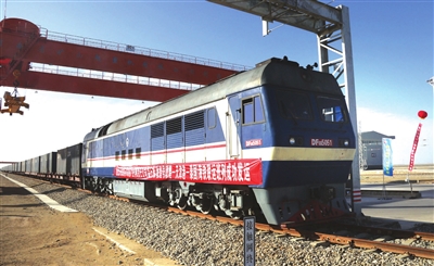 11月21日,首趟“敦煌号”(敦煌—天津港—泰国)铁海联运国际货运班列装载1000吨石棉从甘肃省敦煌铁路西货站综合货场驶出,将经天津港通过铁海联运发往泰国曼谷。 新华社发