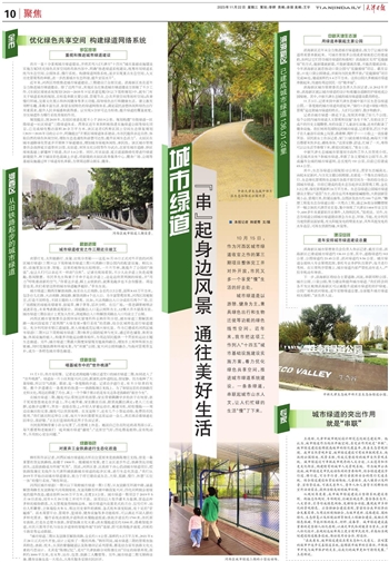 11月3日,记者来到中新天津生态城中部片区生态谷绿道公园,一条宽敞的城市绿道向前延伸,“骑行+步道+绿植+特色景观”是这里城市绿道的特点。人们可以骑行、散步和跑步。