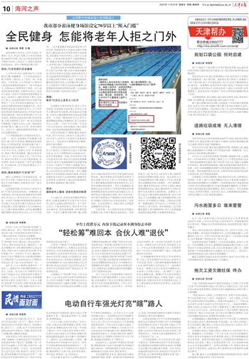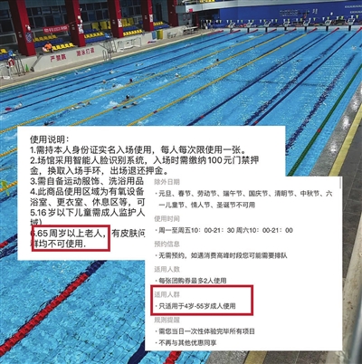 王大爷今年75岁,虽然年龄不小,但身体倍儿棒,吃嘛嘛香。王大爷有游泳的习惯,年轻时一周五次,上了年纪一周一次或两次。今年年初,王大爷在家门口奥体中心附近的优莱荟游泳馆办了一张10次游泳卡,花费600元,想等用完了再续。5月,游泳馆突然张贴通知,不接待70岁以上的老年人游泳。“其实平日里游泳有很多都是70岁以上的老年人,他们有的办了季卡,有的办了年卡,也是通知他们用完之后就不能再续了。”王大爷年轻时在秦皇岛工作,学会游泳后就没再选择其他健身方式。因为熟悉的游泳馆不再接待老年人,王大爷开始在周边找寻新的游泳馆,并向南开区体育局反映此事。“南开区体育局的工作人员非常好,带着我去游泳馆协调,但没有结果,后来又帮我找了另外一家,但人家也有年龄限制,不接待73岁以上的。”游泳馆设定年龄“限入门槛”让王大爷一次次失望而归。无奈之下,他找到本报寻求答案:“我以后去哪里游泳?”