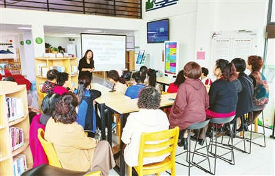 近日,西青区张家窝镇民盛里社区在“青阅书苑”城市书房开展“全民阅读 书香西青——文明从我做起 点滴创造靓丽城市”主题知识讲座,志愿者从文明餐桌、文明交通等多个角度生动地向居民进行讲解。