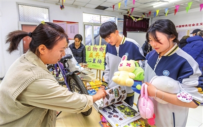 初冬时节,南开区长虹街光明路社区联手街社工站,举行“益共享——爱心置换集市”揭牌仪式,并举办首次旧物置换集市活动。