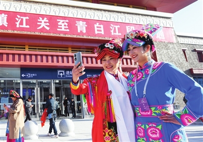 图4:各族群众庆祝铁路开通运营。 新华社发