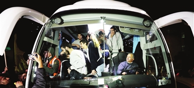 11月28日,载有获释巴勒斯坦被关押人员的大巴抵达约旦河西岸城市拉姆安拉。 新华社发