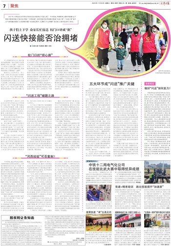 2021年,河西区在全市率先开始在试点学校推出“闪送工程”。今年伊始,市委教育工委和市教委(以下简称市教育两委)开始在全市推广“河西经验”,倡导有条件的学校稳步推进“闪送工程”。“闪送工程”是什么?能否解决校园门口的拥堵问题?在实施过程中,又遇到了什么难题?连日来,记者对此进行了走访。