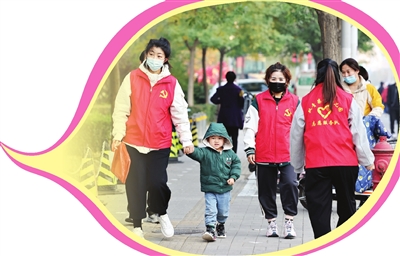 可以说,这5个关键环节缺一不可。采访中,多位中小学负责人对此都表示认可。“其实在我看来,这中间最难的是‘志愿者’这一环。”韩洪涛表示,没有志愿者的加入和保障,这项工作不可能长久。为了实施好“闪送”,平山道小学组成了由学校护导行政人员、教师、保安人员,社区退伍军人服务社志愿者,区域内派出所民警和交警组成了9人“闪送”小组,“我们非常感谢来自社区的志愿者和区域内的警力!他们为孩子们搭起了一道安全屏障。单凭学校的力量,不可能完成这项任务。”