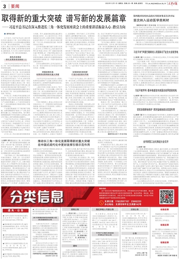 11月30日,习近平总书记在上海主持召开深入推进长三角一体化发展座谈会并发表重要讲话,从全局和战略高度擘画长三角一体化发展新蓝图。广大干部群众表示,要以习近平总书记重要讲话为根本遵循,完整、准确、全面贯彻新发展理念,砥砺奋进、久久为功,在新时代新征程上不断谱写长三角一体化发展新篇章。