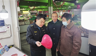 图为河东区市场监管局执法人员深入辖区市场进行巡查。