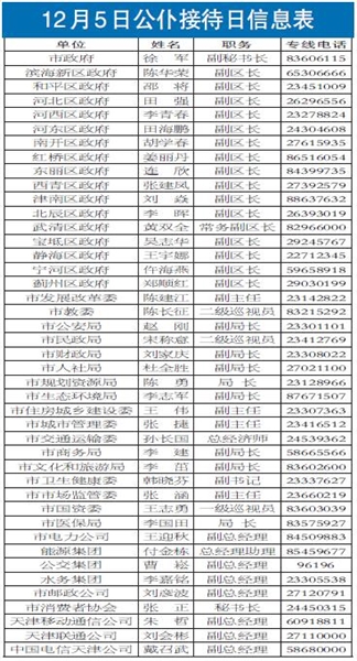 本报讯(记者 高立红)12月5日是公仆接待日,当天9:00—11:30,全市43个单位的负责同志将在各自单位接听热线电话,为市民解释相关政策、解答疑难问题。